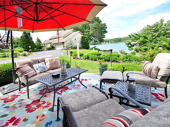This is the one you have been waiting for! This beautifully updated contemporary-styled home is located in a small enclave of homes at Goat Point, with spectacular southwestern water views of the peaceful Beebe Cove and is a hidden gem! Located on quiet road, but close to Mystic Center, this 4 bedroom, 3 bath home has exceptional water views and a shared dock for a 20 foot boat for ocean access. Bright, open concept kitchen with great water views and access to the outside deck and gardens. Three fully renovated bathrooms with high-end finishes including glass tile and granite counters. Exceptional master bedroom with vaulted ceiling and has outstanding water views, a completely remodeled master bath and large walk in closet with built-ins. Plenty of room to spread out with large family room with vaulted ceiling, fireplace and hardwood flooring. Relax in your four season sunroom with cedar hot tub with views of the water and meditation rock garden. Outdoor spaces include extensive deck, paver patio and perennial gardens with fire pit - all with amazing views! Live worry- free with updated mechanicals and newer roof and attached 2 car garage. This home is the perfect retreat for all seasons. Owner/Agent