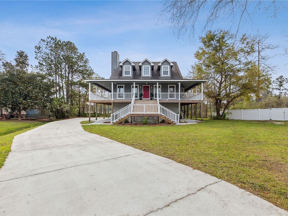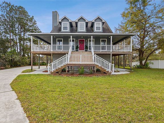 Your dreams await you! Step inside this one owner gorgeous home! Complete with wrap around porch that encompasses all four sides of this home! Part of the sides and the full back are completely screened! views from the back and side yard of the tidal creek! High tide is any nature lovers dream! Garages are underneath the home and can house multiple vehicles and provides ample storage! Grand front staircase leads to main part of home! Living room leads into kitchen with dining space overlooking screened porch and water views! Spacious design is easily accessible for anyone who enjoys cooking or equally enjoying if you also like to eat! Primary bedroom has private door entrance to screened porch and opens up to ensuite! Walk in closet (with a storage closet inside!), separate shower, double vanity and an entrance to the laundry room!! Powder room just outside the laundry space! Upstairs has 2 mirror image bedrooms with dormer! Beautiful views of the river will make you never want to come out! double closets in both bedrooms! In between rooms is a bathroom as well! Located on a quiet cul-de-sac in the back of a established neighborhood without an HOA! Minutes from I95- 25 minutes to Kings Bay Naval Base! Great place to call this one home!
