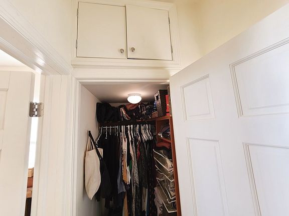 No Fee Rent stabilized apartment: Beautiful 1 bedroom in Fort Greene tree lined block. Lots of natural lighting with skylight. Located on the top floor of a walk up brownstone building, this apartment has a lot to offer. You will be welcomed into the apartment with a walk in closet with lots of storage and extra storage space above the closet. The Kitchen has custom floor to ceiling cabinetry with plenty of storage and includes a dishwasher and built in microwave. Fully tiled bathroom with huge custom cabinetry and skylight. Lots of natural lighting from window in each room, especially from the afternoon sun. The bedroom will fit a full sized bed comfortably width side plus additional furniture. A queen bed can fit length wise. Large private storage bin included in the basement. Pet friendly building. Heat and Hot water included.
