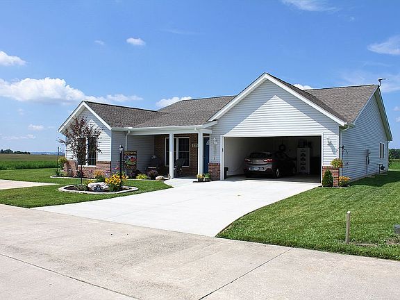 This is a must see 3 year old self standing condo (cluster home) with no immediate neighbors. It has 2 x 6" exterior walls! It has 3 bedrooms and 2 bathrooms. It has a large 20 x 27 bonus room (with it's own climate control unit) that leads to the back covered porch that can be used for family gatherings or a hobby room. This house is surrounded by farmland on 2 sides and the views out the back covered porch are beautiful and relaxing (see pictures). Very quiet setting. All on one floor for easy access. This condo is at the end of the road so there is no through traffic. Very unique location. It has never been smoked in and has never had a pet. There is also a 4 x 12 raised garden with this unit.