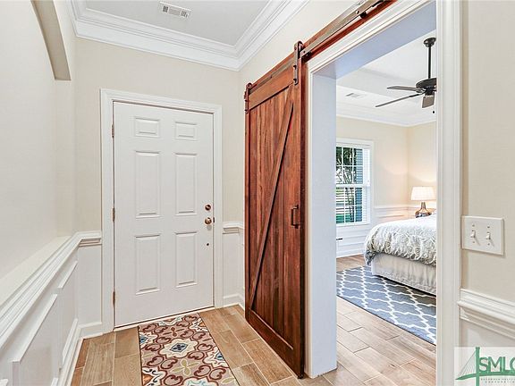 This stunning home features a primary bedroom on the first floor, two generously sized guest bedrooms upstairs, and a versatile room on the main level that can serve as a 4th bedroom or office. The open-concept design features a living room with soaring two-story ceilings, creating a bright and airy feel. Upstairs, you'll find a large loft perfect for extra living space, and an oversized attic for all your storage needs. Outdoors, relax in the screened patio with an extended slab, perfect for entertaining. The shaded backyard, surrounded by trees and natural growth, provides a cool retreat during Lowcountry summers.