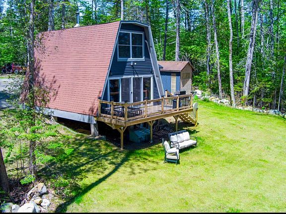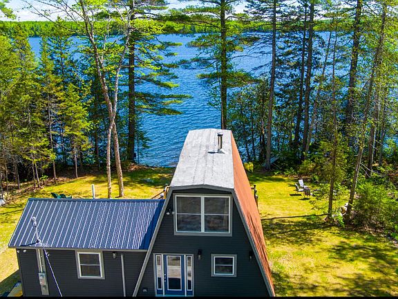 Schoodic Lake! Look no further here is the perfect like new turnkey year round home on beautiful Schoodic Lake with 200' of prime lake frontage! Watch the spectacular sunrises from the comfort of your beautiful newly renovated home, expansive front lawn, firepit or dock! Open floor plan living with full wall of glass 4-panel patio door with screens overlooking the lake and deck. No expense was spared new custom kitchen cabinetry, countertops, ceramic backsplash, stainless steel French door refrigerator, gas range, microwave, dishwasher and oversized sink. Tarkett ProGen waterproof LVT plank flooring, custom staircase, entryway bench and built-ins from reclaimed wood from original camp for plenty of storage. New shiplap interior, windows, doors, lighting, plumbing and electrical. House is wired for a generator at electrical panel. Daikon energy efficient heat pumps and air conditioning each level, on-demand propane boiler and baseboard heating system. Spray foam insulation air exchange system exterior insulated. New vinyl siding new 14x16 addition with metal roof with full 4piece bath, washer & gas dryer huge linen closet. New septic system. Separate mechanical/storage room. Fully stocked with new furnishings, queen sleeper sofa, new dishes, kitchenware, linens, patio table, grill, firepit. Dining areas include antique tables & seat 10. Existing permit in place for another 30x40 2-story addition & 10x20 deck. Full daylight foundation can be added. Bring your vision to expand this already beautiful house for your dream home or love it just the way it is. Large driveway for vehicles & toys with parking & storage across road. Additional land available to purchase to build garage or make one part of addition. Lots of possibilities for your dream design. Four season living in the heart of Katahdin region year round maintained road low association fees & weekly trash pickup. Close proximity to shopping restaurants services.