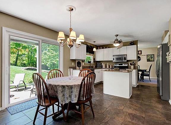 Ready for living, this home is family friendly with an entertainer in mind too! Gorgeous bamboo hardwd flooring lead past the 1/2 bath (w/pedestal sink & black/wht ceramic tile) to the open kitchen/breakfast/family room. Ceramic flr & continuous neutral decor blend the spaces. The Kitchen boasts wht custom cabinets, SS appliances & dbl sink w/disposal, granite counters, center island, pantry, & ceiling fan. Sliding glass doors extend living to the outdoor patio & private backyard (backing to trees). For more formal occasions gather in the separate dining rm adjoining to the front living rm w/gas FP. Neutral carpet flows throughout the upstairs. The master has a touch of glam w/vaulted ceiling & chandelier. The attached bath has a large walk-in closet w/built-ins, corner soaking tub, oversized shower w/bench & dual sprayers, & tile floor. Two more beds & 1 full bath complete the UL. LL Rec rm w/wet bar & wine cooler. Laundry rm w/sink & ironing board, 2nd 1/2bath, & more! Roof (2016)