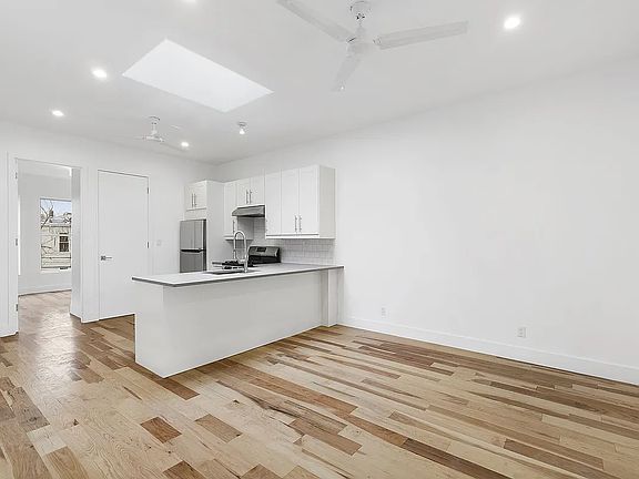 Very Large Designer Style Residence Meets Historic Charm in a Fully Renovated Bushwick Residence Occupying the entire second floor of a beautifully preserved circa 1910 townhome, this stunning full-floor residence has been completely reimagined through an impeccable gut renovation. Blending period character with modern sophistication, the home offers a thoughtfully designed layout ideal for effortless, low-maintenance living. Bathed in natural light, the spacious interior features soaring 11-foot ceilings, exposed brick walls, and gleaming hardwood floors throughout. A dramatic skylight in the living area adds to the home's airy, open feel, enhancing the abundant sunlight that fills the space. The smartly appointed kitchen is equipped with granite countertops, stainless steel appliances, and a vented kitchen hood system that exhausts directly to the exteriorperfect for those who love to cook. The home includes two full bathrooms, each beautifully finished in marble, with one featuring a deep soaking tub for a spa-like retreat. Three bedrooms offer excellent natural light and feature large windows and generous proportions. The home also includes a fully equipped internal laundry room with a vented washer and dryer, both exhausting to the exterior for optimal functionality. Located in a charming two-unit building on a peaceful, tree-lined street in the heart of Bushwick, this residence offers a quiet, residential feel while being just moments from the best the neighborhood has to offer. Enjoy easy access to subways, local parks, coffee shops, and popular restaurants. Ample street parking adds to the convenience of this beautifully crafted home.
