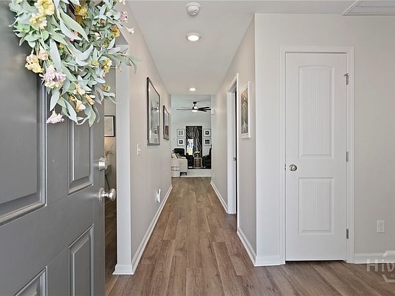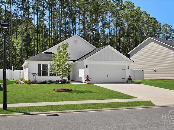 Better than NEW! This beautiful 4-bedroom, 2-bath home features stunning LVP flooring throughout, soaring ceilings, and an open-concept layout perfect for modern living. The kitchen shines with white cabinetry, granite countertops, and stainless steel appliances. The spacious master suite offers a walk-in closet, dual granite vanity, soaking tub, and a walk-in shower. Enjoy the convenience of a dedicated laundry room with a folding table and extra storage. Step outside to a private backyard oasis with a pergola and storage shed. Located in a vibrant community with resort-style amenities including a pool with slide, clubhouse, fitness center, and walkable streets. Just minutes to Gulfstream, Savannah Airport, JCB, shopping, dining, and entertainment.