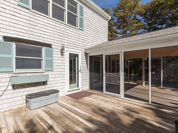 This larger 3 bedroom Cape has both great living space AND a great location. Downstairs we have an open kitchen/living/dining area with vaulted ceilings, skylight, ceiling fan, built-ins, and a gas fireplace, opening onto an oversized screened porch and deck, with 2 larger bedrooms and a full bath. Upstairs is a huge primary bedroom with modest views of Herring Pond and a loft area with a wall of windows overlooking a deck area and a pine woods. Additionally, we have a full basement, whole-house gas generator, 2 car garage, 'owned' solar panels, natural gas, and Town water. This home is located just a short distance from the bike path and even closer to the public Herring Pond Beach area. Being sold partially furnished. This is a must see. Dream Here!
