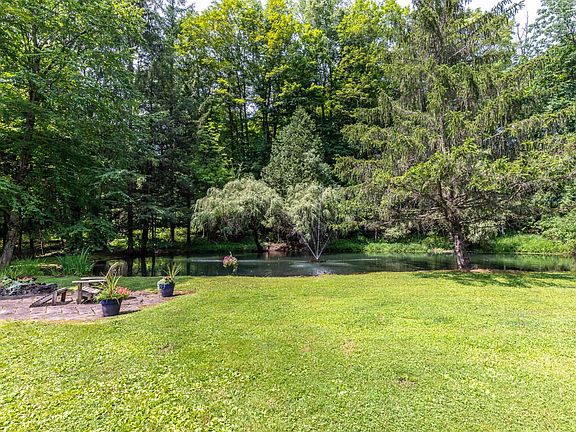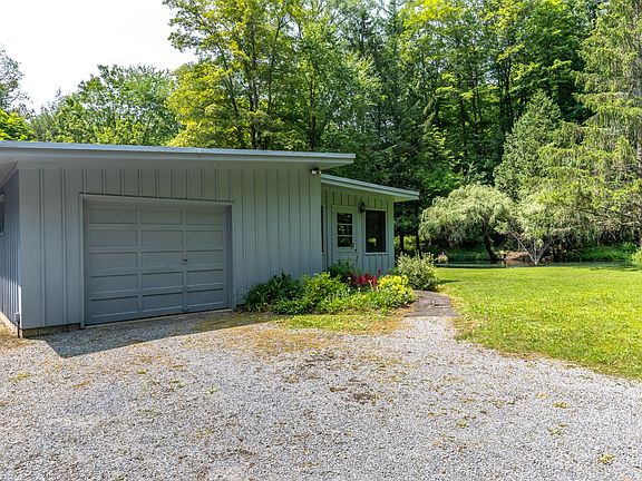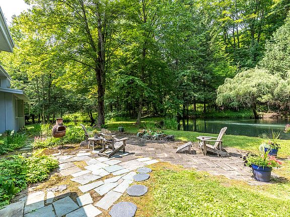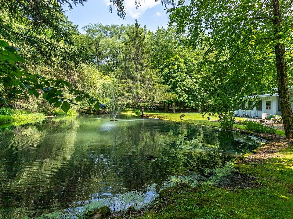For a private tour call 315 868 6719. This home's 2,354 sq. ft. interior mirrors the natural beauty of its 5.16 wooded acreage with a graceful, open, and very livable flow. The influence of nature in its design masterfully blurs the lines between inside and outside spaces, imparting a sense of calm and balance. Once a vacation spot for the country's elite, these renovated Dover Road properties, with their quiet refinement, dot the rolling landscape and are breathtaking. It's a very secluded, close-knit community hidden away like a precious gem and only 20 minutes from Utica. As you step inside this three-bedroom, two-bath home, expect to be impressed. This is no ordinary lifestyle. It's a home that will transport you to a place where time seems to stand still, and the sounds of nature coming through the windows create a relaxing, soothing backdrop. The floorplan is open and airy with stunning views of the ponds, perennial plantings and woodlands surrounding the house from every window. Lovingly maintained over the years to preserve its history and enrich its livability, this home is a rare midcentury find. Looking out toward the large pond from the living room, you'll think you just stepped into Monet's garden. The floor-to-ceiling windows frame a dreamlike image of the large pond with its weeping willows tilting toward the water and the rippling reflections of irises and tall grasses planted along the bank. The scene is magnificent. The living room and connected dining area offer the ideal environment for easy entertaining with their abundance of natural light, original wide-plank oak floors, and working original stone fireplace. You can imagine entertaining in this room during the winter holidays with the warmth and glow of the fireplace and the iced-over pond just outside the window. During the warmer months, the room's easy access to the screened-in porch and outside patio offers limitless entertaining opportunities, including dining al fresco under the stars. Transitioning to the eat-in kitchen, you'll discover a cheery space loaded with storage and easy access to the attached garage. 235 Dover Rd is one of those rare, vintage properties that seldom hit the market... and one you don't want to miss.