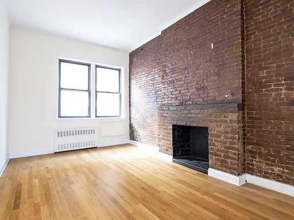 This street level space is surprisingly quiet and filled with character, featuring an exposed brick wall with a charming decorative fireplace that adds warmth and historical charm. High ceilings and polished hardwood floors enhance the open, spacious feel.