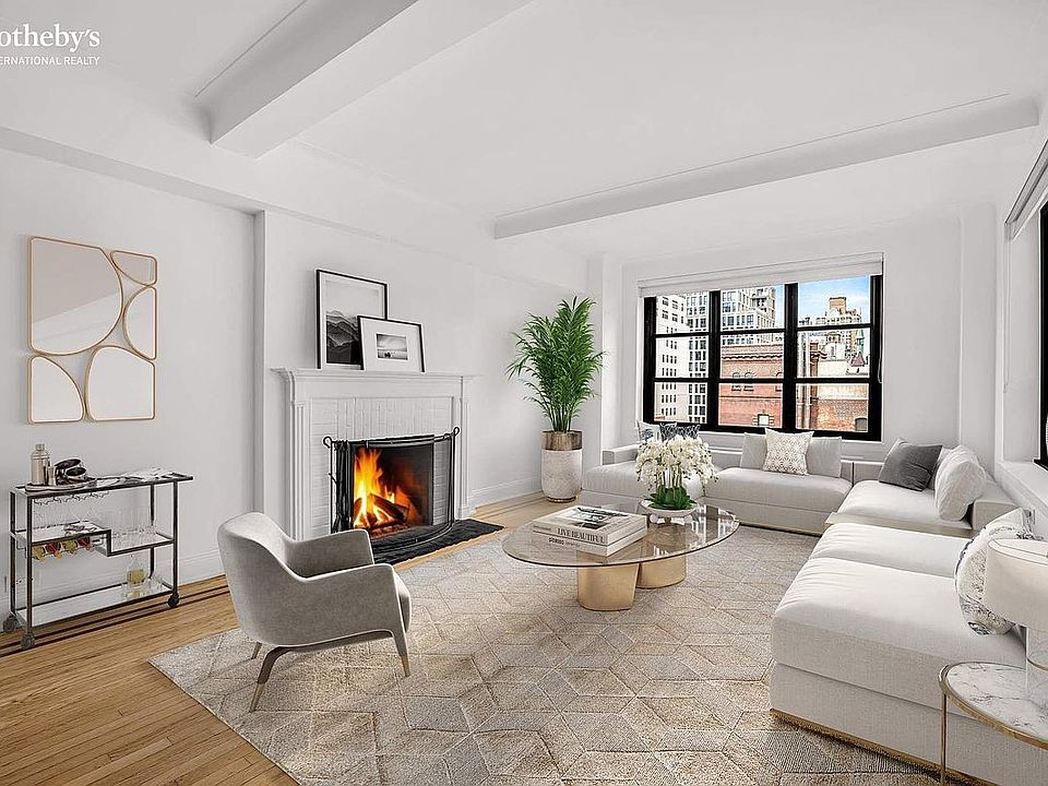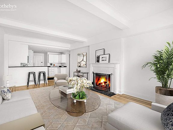 This coveted C-line high floor one-bedroom boasts both Chrysler Building and Gramercy House Garden views and an expansive corner great room featuring a wood-burning fireplace as its centerpiece. The residence also includes an eat-in chef’s kitchen with abundant custom cabinetry, a sumptuous primary bedroom, a windowed bath and radiant light from two exposures. Windows overlooking the private tranquil garden and tree-top views are the perfect vantage point to watch the seasons change. Iconic views to the north offer a twinkling night sky of New York City’s iconic buildings. Intrinsic architectural prewar elements including high beamed ceilings, inlaid hardwood flooring, Art deco ceramic tiles in the bath and circa 1930 fireplace surround are just a few of jewels offered in this Gramercy House exemplary home.