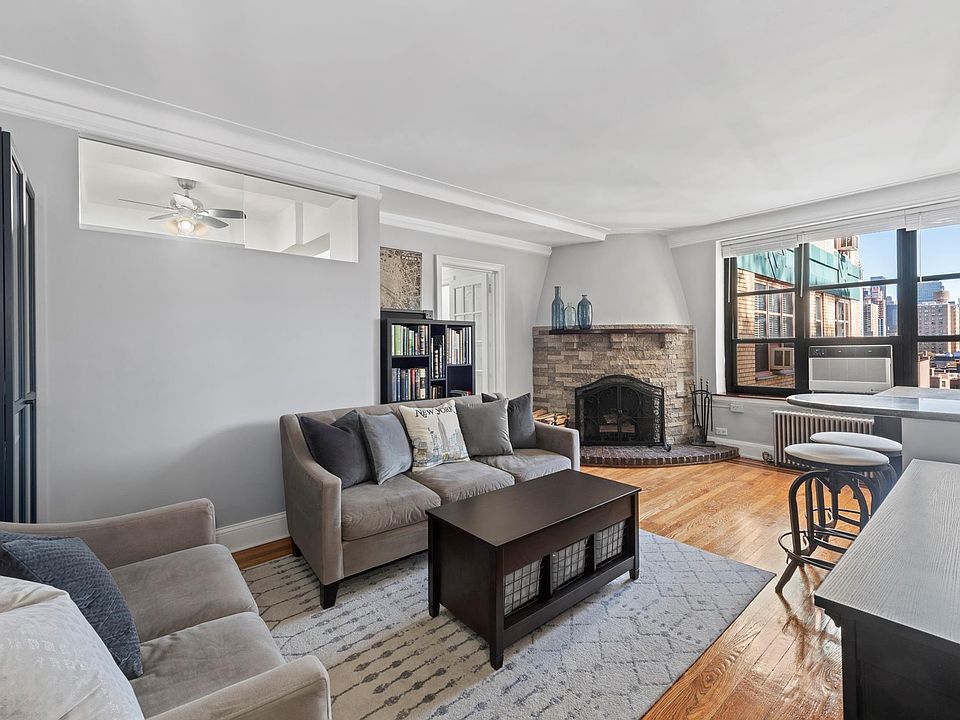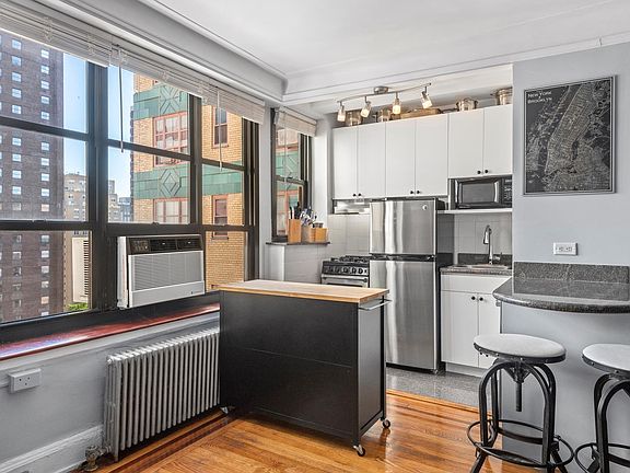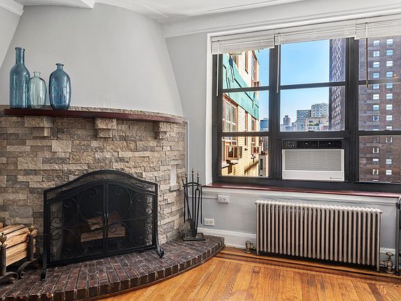 Fully renovated and move-in ready best describes this striking and bright pre-war studio. Complete with its own separate bedroom, this unit offers a living room with a wood burning fireplace, open kitchen with a breakfast bar, and a magnificent view of The Chrysler Building from the living room and kitchen windows. Ample closets, hardwood floors, and a renovated bathroom complete your next home. The Gramercy House boasts a central laundry room, bike storage, a beautifully appointed lobby, an enchanting residence garden, and a landscaped roof deck with sweeping views! Pied-a-terre living and co-purchasing by parents are not permitted. Gifting is allowed. Maintenance includes electricity, A/C and heating. Pets are welcome! New To Market-Asking $499K!