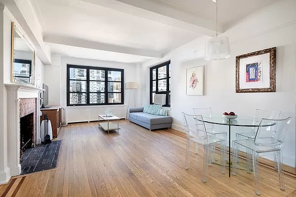 Stunning sun-drenched views of the New York City skyline flood this home with natural light. Perched on the 14th floor, this spacious pre-war one bedroom apartment has two corner exposures with oversized windows, offering views to the south, west and north. Bask in the morning sun or relax as the city magically lights up at night. The recently upgraded kitchen has a dishwasher and ample storage. The large living room easily accommodates both dining and living areas and features a woodburning fireplace. The king sized bedroom has three closets and an ensuite windowed bathroom with classic Art Deco style tub. Beautiful pre-war details throughout, including beamed ceilings and hardwood floors with inlay. Gramercy House is a full-service building with 24-hour concierge, doorman on duty every afternoon and evening, and exceptional staff that includes a live-in super. Stunning outdoor space includes both a serene landscaped garden for the exclusive use of residents and a planted roof terrace with incredible city views. Building amenities include laundry, storage and bike rooms. The board requires the purchaser to occupy the apartment as your primary residence (no pied-a-terre buyers). Gifts are allowed but no co-purchasing or parents purchasing for children. 40% down payment is required. Pet friendly. The maintenance includes electricity, air conditioning and heating.