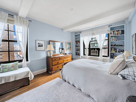 A spacious and sophisticated, bright pre-war one bedroom apartment at Gramercy House, the highly sought after Art Deco coop on East 22nd Street, a block and a half from Gramercy Park. The large living room (13'8" x 19'5") has a working fireplace and a wall of West facing windows with a fantastic view of the Empire State Building. The bedroom (11'3" x 17'6") faces both North and East with two large closets and also has spectacular views of the Empire State Building. The generous foyer opens up to the dining room and living room with two large closets. The kitchen (15'10" x 4'9"), equipped with a dishwasher, has a large window facing West and opens up to a dining room (10'3' x 9'2") with an additional West facing window. The pre-war charm has been preserved, in particular the hardwood floors with an inlaid band in the living room, beamed ceilings. Seldom will you find an apartment embracing so many attractive features and wonderful views and light.