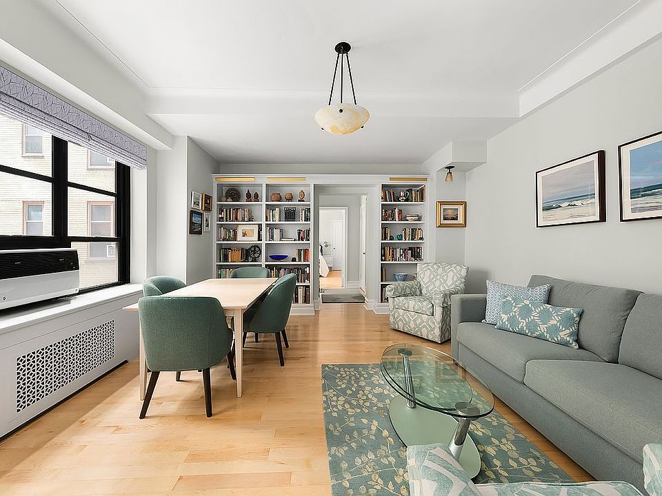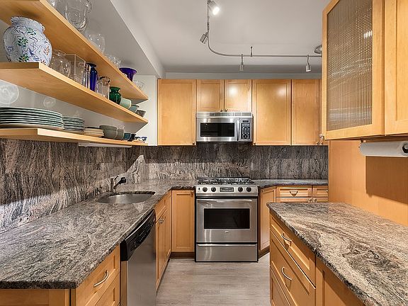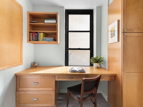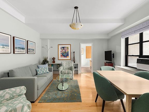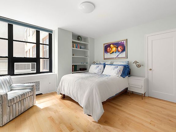 Spacious and elegant pre-war one bedroom at Gramercy House, a highly sought-after Art Deco co-op on East 22nd Street. A few steps up from the lobby, your own private entrance leads to a generous foyer. Designer renovation with no expense spared and many custom details throughout. The large living room (15’ x 17’8”) provides plenty of space for living and dining. Custom built-in bookshelves with lighting offer the perfect place to display books and small art pieces. Do you love to cook? The unusually spacious kitchen (8’ x 15’) has plentiful cabinet space, granite countertops, stainless appliances and even a large built-in desk/home office. In addition to what is shown on the floor plan, an original dumbwaiter space has been reclaimed to add extra storage and the perfect place for a printer and office storage. The nicely sized bedroom has abundant closet space and even accommodates a sitting area and additional dresser. The windowed bathroom has been recently renovated. Beautiful pre-war details throughout, including 9’6” beamed ceilings. Gramercy House is a full service building with 24-hour concierge, doorman on duty every afternoon and evening, and exceptional staff that includes a live-in super. Stunning outdoor space includes both a serene landscaped garden for the exclusive use of residents and a planted roof terrace with incredible city views. Garden access is close enough to this apartment to enjoy your morning coffee outside by the fountain. Building amenities include laundry and bike rooms. The board requires the purchaser to occupy the apartment as your primary residence (no pied-a-terre buyers). The maintenance includes electricity, air conditioning and heating. Financing allowed up to 60%.