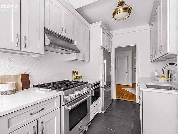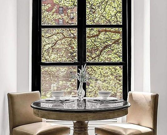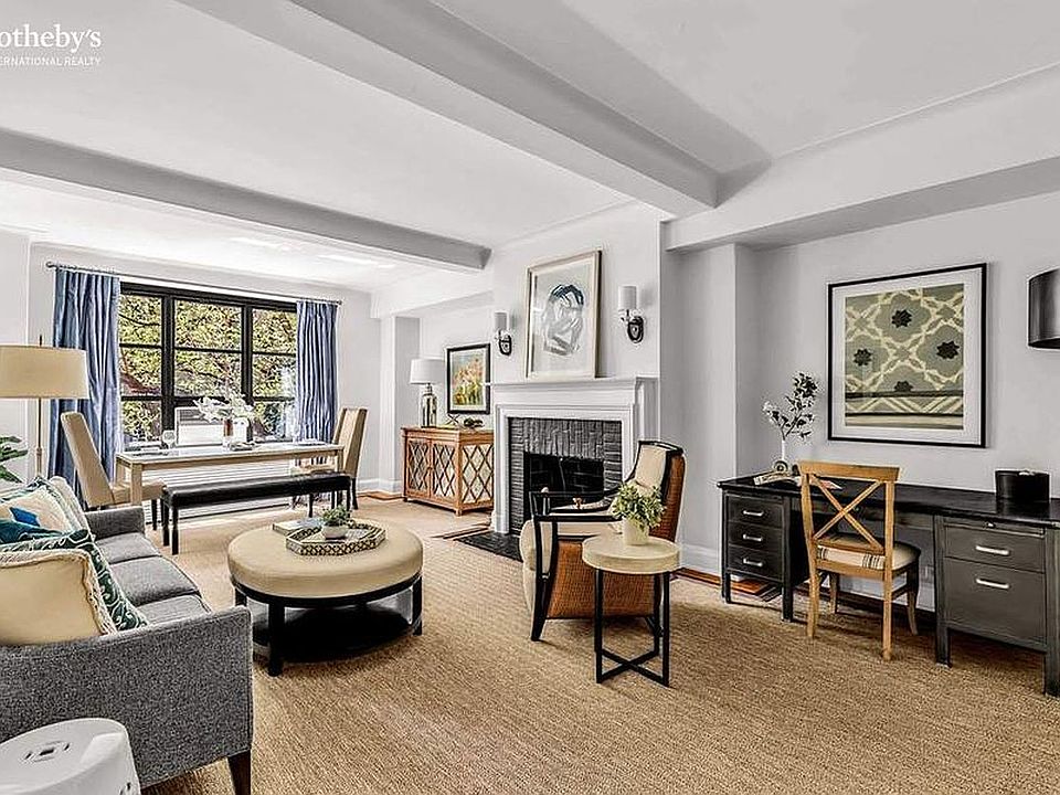 This Gramercy House one-bedroom is renovated to perfection, an ideal combination of contemporary design with prewar architectural details. The gracious living and dining room has a wood-burning fireplace as its centerpiece, inlaid oak flooring and high beam ceilings. The large foyer leads you into this south-facing home with radiant light with leafy tree views. The windowed eat-in chef’s kitchen boasts top-of-the-line appliances including Bertazzoni range, Fisher Paykel refrigerator and stainless-steel Bosch built-in microwave and dishwasher. The kitchen’s contemporary design includes Caesarstone counters, gray cabinetry, gray tile flooring and a large pantry closet. The special feature is the cafe table with charming tree views. The generously proportioned bedroom includes a king-size bed, reading area, two large closets and spectacular light. The windowed bath features a cast iron porcelain tub and black granite top vanity. There is voluminous closet space though-out including linen closets, storage closets and clothing closets. There are expansive gallery walls for your art collection. The “I” apartment is Gramercy House’s most desirable line over East 22nd Street with beautiful church and tree views.