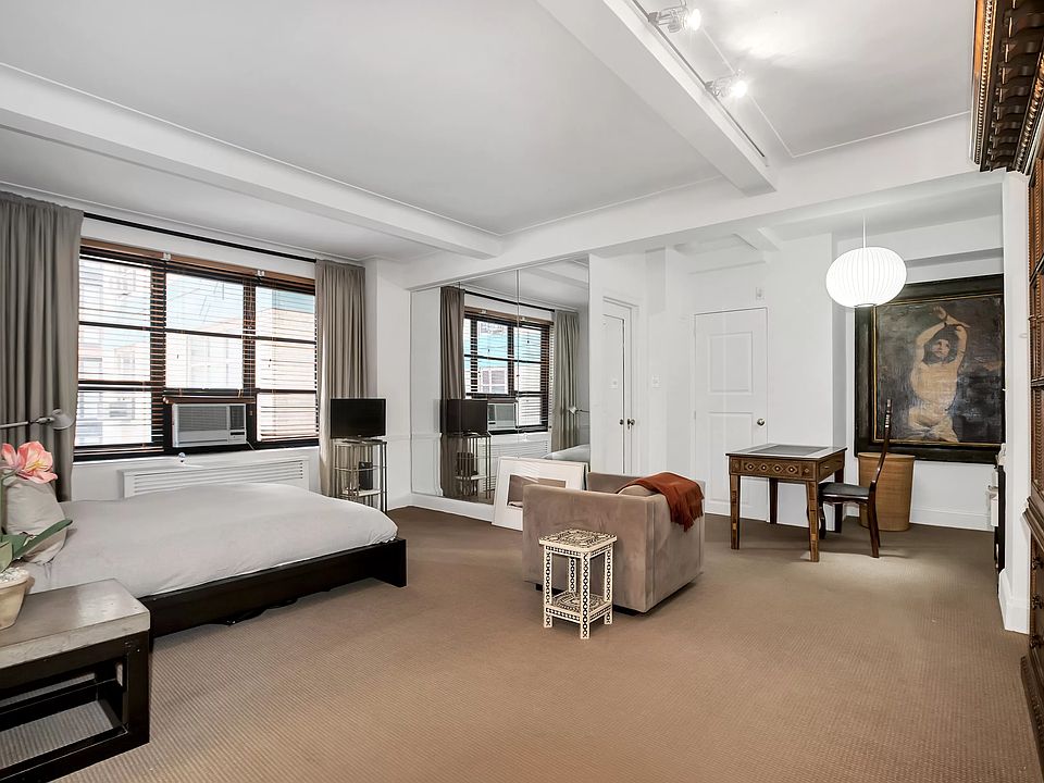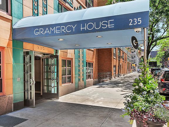 One of the largest studios in Gramercy House, the highly sought after Art Deco Coop on East 22nd Street a block and a half from Gramercy Park and with easy access to the attractions of Union Square, the Flatiron District and the East village. The apartment has a large kitchen with a dining area (6'4" X 7' 8"), a sleeping alcove and a large main room (13' x 19'), with windows in the living room, kitchen and bathroom. There is a hall closet, a closet in the sleeping area and plenty of space to create additional storage. The apartment has a very open, spacious and elegant feeling and has a beamed ceiling reflecting the pre-war architecture. A hardwood floor with an inlaid border is currently covered by carpeting. Gramercy House is a full service building with an outstanding and professional staff and super, a 24 hour concierge and additionally a doorman on duty in the afternoons and evenings. There is a laundry, bike storage, a roof deck with a dramatic view and a large and enchanting garden for the exclusive use of the residents. The coop board allow gifts, but do not allow parents purchasing for, or co-purchasing with their children and require a down payment of 25%. No pied a terre buyers and one dog is permitted per apartment. The maintenance includes electricity, heating and A/C.