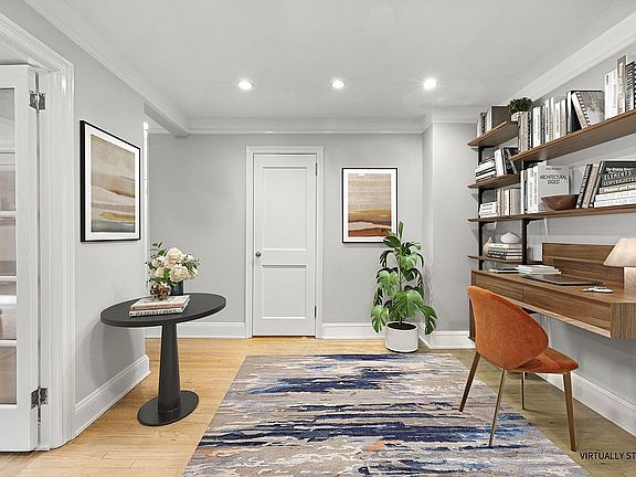 The feeling that you get when you cross the threshold of Apartment 9J is the immediate sense of being at HOME. The gracious entry foyer acts as its very own room with its grand scale. Off of the gallery entrance through beautiful french doors is an expansive great room with plenty of space for living and dining accommodations. At the center is a gorgeous wood-burning fireplace with a slate stone mantle. It is the perfect focal point while entertaining or just to enjoy quietly on your own.