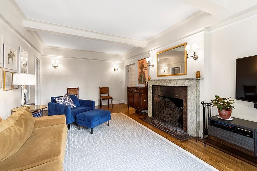 Finally, the beautiful spacious two-bedroom, two-bathroom home you've been waiting for in the iconic Gramercy House, a block and a half from Gramercy Park! This rarely available highly coveted A-line features elegant Prewar details throughout. The gracious large windowed entry doubles as the dining room - perfect for entertaining. Continue to the bright sunny living room, centered on the wood burning fireplace with beamed ceilings and western facing windows. The renovated windowed kitchen includes top of the line appliances custom cabinets. The Primary Suite with bright western garden views is complete with its own hallway of closets leading to a private full bathroom. The second bedroom has its own en-suite bathroom. Gramercy House is one of the most desirable Art Deco Co-op buildings in Gramercy with a 24-hour concierge and doorman during the afternoons and live-in superintendent. There is a beautiful manicured garden for the exclusive use of the residents, and a roof deck with dramatic views of midtown. The building also has a laundry room and bike storage. Gifting and guarantors are considered. However, co-purchasing and Pied-a-Terres are not allowed. The building allows 60% financing and is pet friendly. The maintenance includes electricity, air conditioning and heating. The Co-op allows one dog and no restrictions on cats.