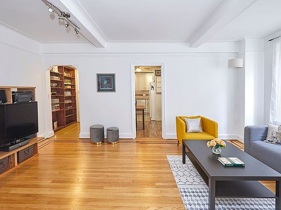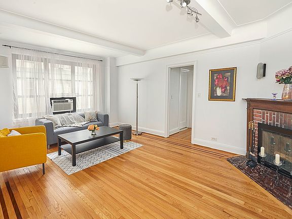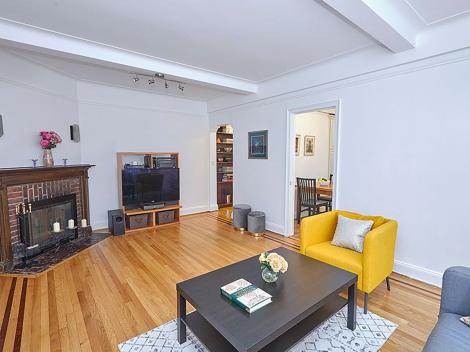 Whether you are relaxing in the bucolic and tranquil 5000 sq. ft. garden, or spending time in your splendid new apartment replete with pre-war details, you will feel right at home. Behold the mahogany-trimmed hardwood floors, archways and high-beamed ceilings as you enter this lovely unit, featuring ample closet space, custom shelving, and a west-facing living room with a working wood fireplace.
