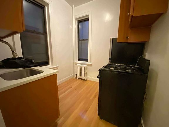 Beautiful studio feels like a one bedroom. The living/sleeping area is separated by a hallway full of closets and a windowed bath that leads to a big rat-in kitchen with 2 windows. Sunlight everywhere! Skyline view. The video is of 5G, next door. Same kitchen. Bathroom is new but may not be identical.