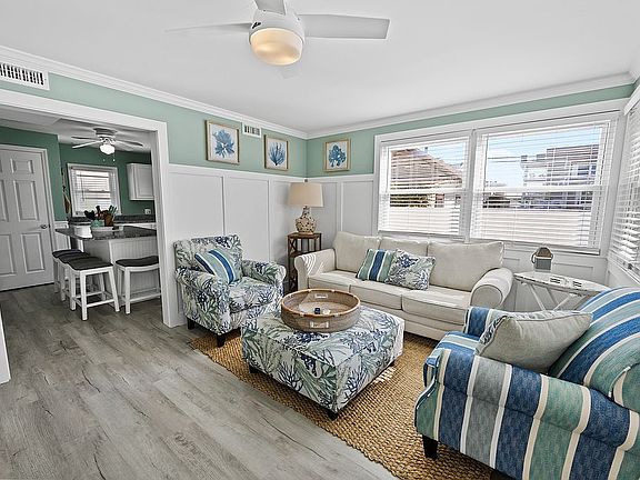 WELCOME HOME!!!! This adorable move-in ready cottage is amazingly situated in North Wildwood's most sought-after location! 90 steps to Hereford Inlet beach and 1 block away from the exciting entertainment district, this place has it all! Newly renovated in 2022, the cottage has new vinyl floors and custom-trimmed walls, and crown molding. The cottage sleeps 8 adults comfortably and has a large kitchen with a 4-seat island, living room, and dining area. The outside area includes a private seating area, a private shed, and an outdoor shower. New water heater installed in 2023, and a new roof installed in 2021. This will not last long! Hurry to make this dream cottage yours! Furniture not included, although negotiable. *Square footage and all descriptions are estimated. Buyer is responsible for own verification. Offering buyers agents a 2% commission, with pre-qualified buyers. Showings by appointment only. To set up a showing, please call or text 267-500-7530