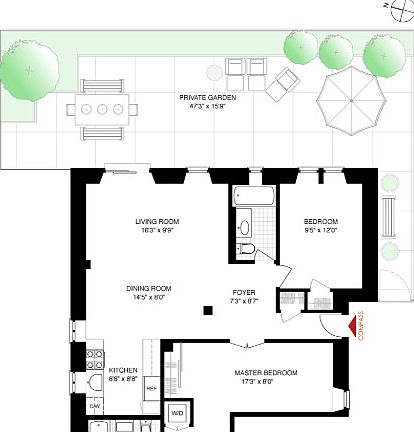 IMAGINE THE POSSIBILITIES - Snow Angels in the Winter, Tulips in the Spring, Grilling & Dining in the Summer, Roasted Marshmallows & outdoor movies in the Fall! This 2BR / 2 BTH GARDEN APT. at 235 E. 2nd St. with a nearly 800 sq. ft. private garden is your next place to call HOME! From the quaint and quiet residential street you descend euro-style down three stairs through a gated entry to the building's red brick paved side yard leading to your own private door or garden entry. Through the door you will find the apt. super sunny, spacious and very nicely renovated. The gut renovated kitchen is perfectly positioned in the layout maximizing the open and contemporary loft-like plan of the adjacent dining area, living area and garden entry. Including an entry hall & foyer, the apt. has a lot of additional flexible space easily allowing for a home office area, play or hobby area, treasured bookshelves and much more. The bedrooms are nicely sized and the master has a new washer / dryer, a full sized closet & dressing area and a new en-suite bath. Located between Albemarle Rd. and Caton Ave. just 1.5 blocks from the F/G train and the local grocer as well as great neighborhood amenities such as Albemarle Playground, Hamilton's, Jaya Yoga, Steeplechase Coffee, Brancaccio's Food Shop and much more! Pets allowed.