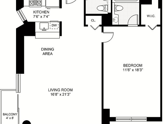 Floor-to-ceiling windowsExtra-large south-facing bedroomExcellent countertop workspaceOversized closetPrivate wrap balconyEn-suite carrara marble bathNew marble-top vanity