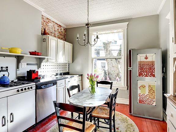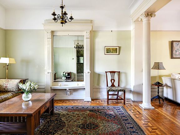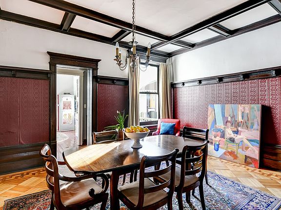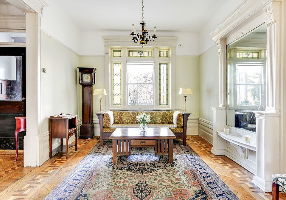 It's all in the details--original details that make this home so special: parquet floors, pier mirror, stained glass, oversized windows, and high ceilings. You will be charmed by this house, starting with the front porch where lazy summer days await. Inside, you will be delighted by the double parlor and the stately dining room with coffered ceilings and picture rails. No problem planning a fabulous dinner for 12. Between the kitchen and dining room, you'll find the powder room and an original china cabinet. The cozy eat-in kitchen has more original built-ins, a retro stove, and an oversized window that provides the perfect vantage point to enjoy the views of your own sweet backyard shaded by a large oak tree. Outdoor entertaining will be a breeze with easy access out the back door and down a few steps to the yard. Upstairs, a skylight floods the hallway with natural light. The large master bedroom with 3-sided bay window and window seat enjoys south-facing light and can accommodate a home office or conversation area. Two additional bedrooms and a recently renovated full bath complete the second floor layout. The 805SF mostly-finished basement easily becomes that much-needed rec room, workshop, craft space, wine cellar, deep storage or whatever you need most. The basement can be accessed from both the front and back house and includes a laundry room and a half bath. 235 E 4th Street is perfectly located at the intersection of Kensington and Windsor Terrace--3 blocks to the Greenwood Playground, dog run, public library, and Ft. Hamilton F/G Station. This picturesque neighborhood also serves up great coffee, yoga, and cocktails.