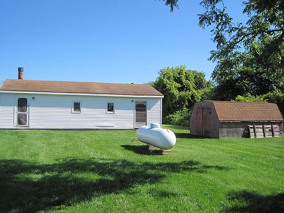 Small, cute, ranch style home with lots of potential. Just over 1 acre of land with a septic drain field. 2 possible 3 bedrooms, 1 small full bath, familyroom and dining room. No laundryroom but room to add. This house needs lots of TLC but is worth the effort. The workshop in back is approx 440 sq ft and can has a wood stove. There is also a small shed for lawn mover and tools. Very nice back yard. Home is being sold ''AS IS''. Sellers have not been in residence in many years.
