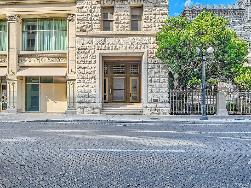 Take advantage of this rare opportunity to live in an elegantly updated historical apartment. Built by George W. Breckenridge in 1902, this fourth-floor gem features an elevator, high-ceilings, air conditioning, a modern bathroom, natural light and great views of downtown San Antonio. It is positioned less than five-hundred feet from the Riverwalk, a half-block away from the Aztec Theatre and is surrounded by dozens of dining and drinking establishments including the Esquire, Hugman's Oasis, Downstairs and Tokyo Cowboy to name a few.