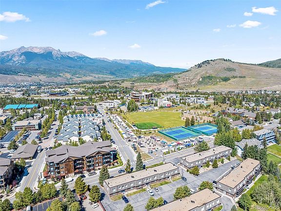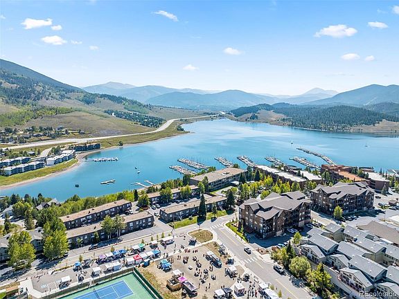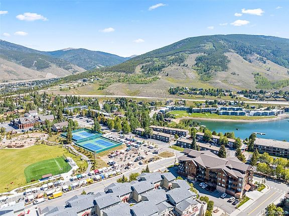 Welcome to this stunning mountain-modern retreat in the heart of Dillon. This beautifully appointed 2-bedroom, 2-bathroom top floor residence boasts impeccable designer furnishings and exquisite attention to detail. Grab your morning coffee and step out on your private balcony to take in breathtaking views of Lake Dillon and the surrounding peaks. The open concept living space features contemporary design elements and large windows that fill the room with natural light. The dining area boasts a custom-built bar, with a built-in wine cooler and spacious pantry cabinets, making it perfect for entertaining. The gourmet kitchen features high-end appliances and sleek finishes, with a custom backsplash. Organize your clothes in custom cabinets in the closets. The master suite is a tranquil haven with a luxurious en-suite bath. Your guests will relax in their private suite with an upgraded bathroom featuring a double vanity. All builder custom upgrades throughout. Enjoy the luminous sunsets over Lake Dillon from your private balcony. Plan a day to hike the nearby trails, explore the Dillon Marina, water sport activities and amazing concerts at the notable Dillon Amphitheater all within walking distance. Take a stroll to the newly completed park with playground and tennis court and pick up your fresh vegetables at the Dillon farmer's market. Store your mountain gear in your large storage unit. This never rented property combines in town living, modern elegance with unparalleled natural beauty.