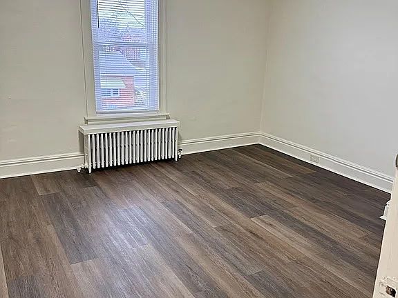 Large one bedroom apartment, one bedroom one bathroom. There is a full second floor that is unfinished but the tenant can use. Balcony in the back, own washer dryer hookup in a shared laundry area with one other tenant. Appliances included except washer and dryer. Gas heat, new windows. No smoking inside, pets allowed for $100 a month.