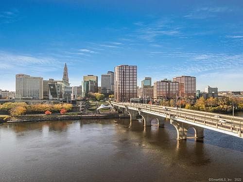 Complete renovation with all the bells and whistles and high tech touches. Enjoy full city views of the Hartford skyline and Connecticut River from ever room room. There are new high grade LVT luxury vinyl tile floors throughout. The entryway has an arched opening to the formal dining room with built-ins and detailed wall moldings. It opens directly into the spacious living room with a wall of windows, perfect for watching sunsets from your private balcony which can be accessed from the living room or master bedroom. The totally remodeled kitchen has lots of cabinets including a pantry closet, granite counters and stainless appliances. There are 3 bedrooms including the master suite with a large, customized walkin closet and a private remodeled bath with a walkin shower. The 2nd full bath has also been totally remodeled. This wonderful home has Smart home technology for light switches, appliances and thermostat plus all new light fixtures and custom window treatments. Enjoy in unit laundry, 2 garage parking spaces, 24 hour security plus wonderful amenities which include an indoor pool, sauna, hot tub, fitness center, tennis courts and outdoor patio area with grills.