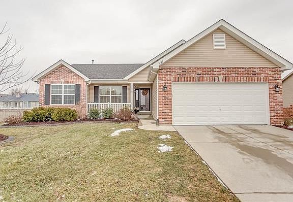 The Hickory floorplan upgraded and extended! From the open living and eating areas with vaulted ceilings, gas fireplace, hardwood foyer entry, 42 upgraded cabinetry (buyer added even more cabinets when it was being built), breakfast bar, and stainless appliances that all stay, to the huge master bedroom with walk in closet, luxury master bath with soaking tub, separate shower, and double bowl vanity! The two other bedrooms also share a full guest bath. The builder also finished approximately 500 square feet in the basement great for a family room and plenty of space to expand and add a bath and bedroom with the egress window. The backyard is fully fenced and has a spacious patio. PestSheild actively maintained and the ATT security system to stay. The neighborhood offers a community pool and is located just minutes to Scott Air Force Base, two new hospitals, I64, shopping, and Shiloh and O'Fallon schools!