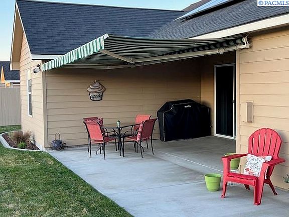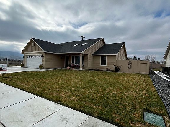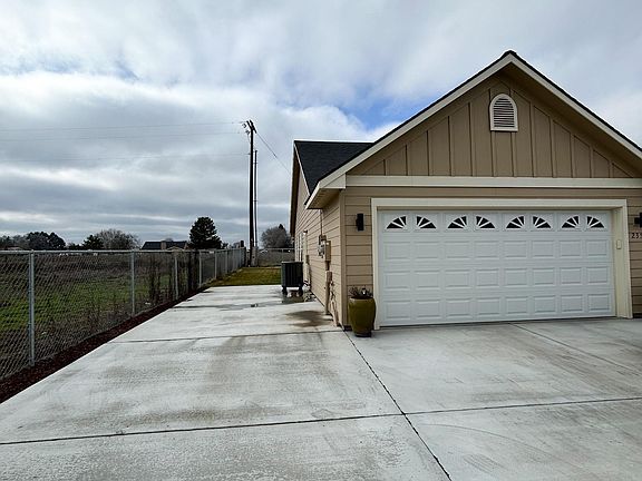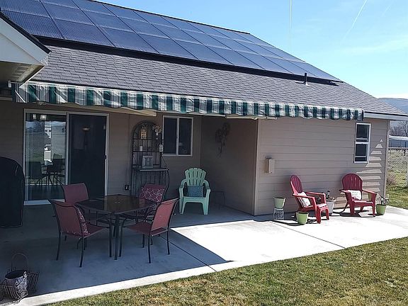 MLS# 273875 SOLAR PANELS!! EV CONNECTION! This home is a must see! Immaculate inside and out! Solar panels are owned and part of the purchase, no additional payments. Excellently maintained. Vaulted ceiling adds to spacious feeling to the great-room concept. All cabinets are custom doors and drawers which feature soft close action for quiet operation. Tiled backsplash in kitchen and bathrooms. Tiled surround in Master bathroom tub and shower. All S.S. appliances stay with home. Many custom touches such as Hardie plank lap siding, super high quality carpet and pad, all interior walls are insulated, SOLAR panels (electric bill at $0.00 for all but 2 months – in winter). Electric car outlet installed inside garage, shade awning with remote on back patio, and the house is already wired for a hot tub. Skylights provide abundant light in living room. Split bedroom concept = Master bedroom on south side with other 3 bedrooms on north side with living room and dining room in center under skylights. Beautiful window trimming for privacy. 6 ft fence painted to match house. RV /boat pad on south side of the house. Open fields on 2 sides. nice corner lot.