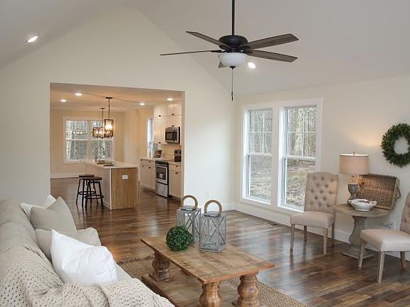 GORGEOUS CRAFTSMAN STYLE HOME ON A NICE .30 ACRE CUL-DE-SAC LOT THAT BACKS UP TO PRIVATE TREE LINE. 1 LEVEL W/ 3 BDRMS, 2 BATHS W/ FURNITURE PIECE VANITY W/GRANITE TOPS, CRAFTSMAN TRIM & DOORS, FLOOR TO CEILING WINDOWS, RECESSED LIGHTING, IMPRESSIVE QUARTZ COUNTERTOPS IN KITCHEN W/ CABINETS TO THE CEILING & LARGE ISLAND. LAMINATE WOOD FLOORS, VAULTED CEILING IN LIVING ROOM. 100% FINANCING ELIGIBLE THROUGH USDA RURAL DEVELOPMENT. FEELS LIKE A CUSTOM HOME. MUST SEE THIS QUALITY BUILT HOME!