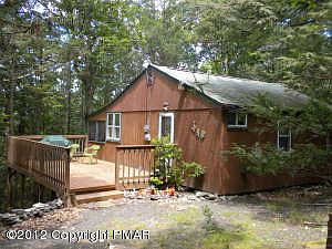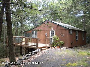 Cute Country Getaway. Offers 2 bedrooms, 1 bath, open living area, huge wrap around deck, large screen porch. Fantastic wooded setting.Minutes to Marshalls Creek. Owner Financing Available.