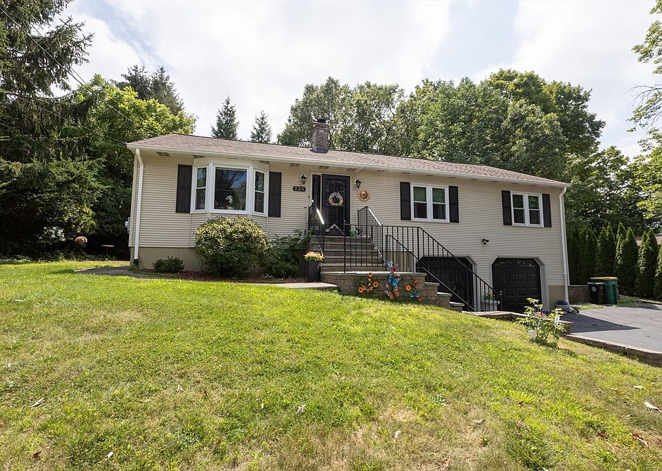 Move-in ready beautiful 3-bedroom home with many renovations throughout! The front door opens to a large living room with hardwood floors, vaulted ceilings & brick fireplace. A large eat-in kitchen with a desk for additional workspace also has vaulted ceilings, new skylights. There is a wonderful bright & light heated sun porch off the kitchen that overlooks a large composite deck and a private back yard with a fire pit. Spacious master bedroom with private custom updated bath.  Another updated full bath with first laundry and two additional roomy bedrooms complete the first floor.  Finished basement and oversized two car garage with extra storage.  Other updates include: new roof, furnace, hot water tank, gutter guards.Public water and sewer.  Available for showings immediately.