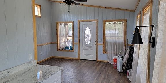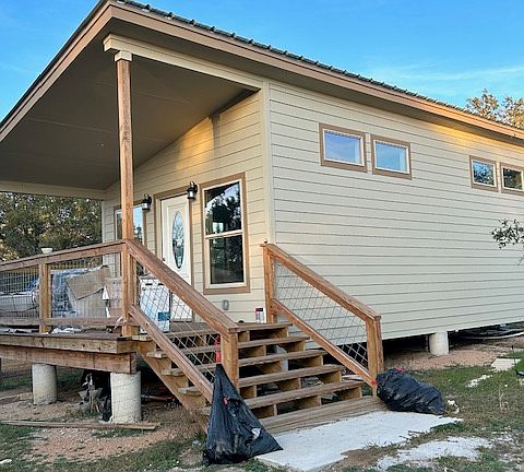 This is a tiny house designed for minimalist occupants. It's all electric, with mini-split air and heat and superior construction. Stacked washer and dryer. Refrigerator. Located on a serene rural lot with gate access. There's a small pond just down the hill and a deck on the house for watching the sunsets. Small cattle and goat herd on the premises. Pasture available for a horse. I am looking for mature and responsible renters, please. You must have a good credit score. Discount provided for teachers, either currently teaching or retired. No smoking. Electric bill and trash pickup at renter's expense. One year lease. Background check and credit score required.