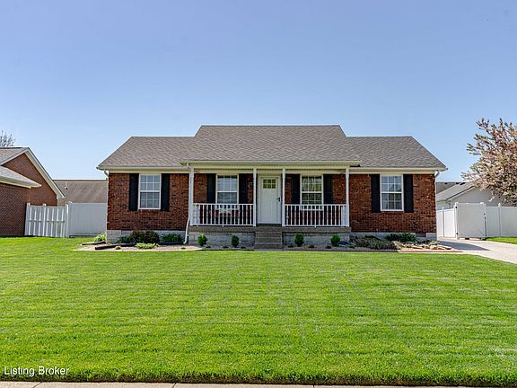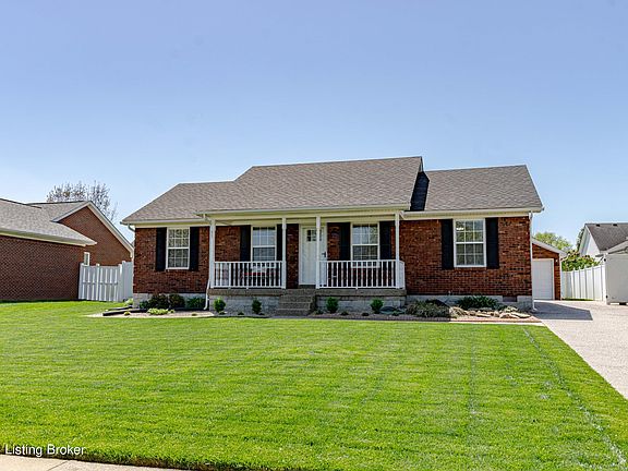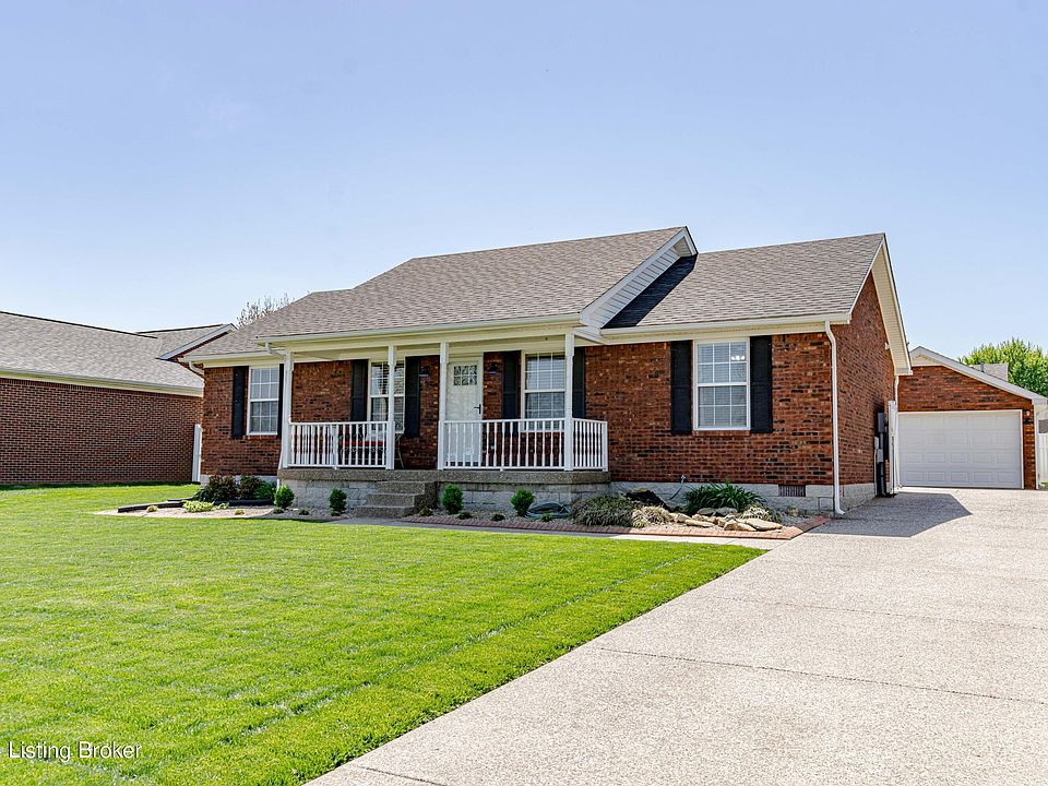 Welcome home to 235 Forest Ridge Dr. in the city of Mt Washington. This gorgeous all brick ranch has 3 bedrooms, 2 baths and a 2-car detached garage. The first thing you'll notice is the immaculate front yard with beautiful landscaping that extends to the backyard with a 6 ft white vinyl privacy fence. The inviting covered front porch leads to the great room with a vaulted ceiling that opens to the eat-in kitchen. You'll love the airy kitchen with granite counters, plenty of white cabinets, stainless sink and modern faucet, a pantry and a window over the sink looking out to the backyard. The laundry is conveniently located off the kitchen for extra convenience. A large primary suite with a trey ceiling, double closet and private bathroom with a large linen closet and updated vanity and mirror. 2 other good size bedrooms and a full bath with updated vanity. Vinyl plank flooring through great room, kitchen and in bathrooms.