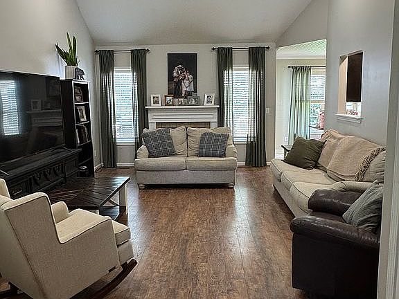 Welcome to this beautifully maintained 3-bedroom, 2-bathroom home, ideally situated at the end of a peaceful cul-de-sac. Inside, you’ll find hardwood flooring throughout, a spacious great room with vaulted ceilings, can lighting, and a cozy fireplace. The kitchen features stainless steel appliances and ample cabinet space, while the primary suite offers a trey ceiling, newly added can lights, a generous walk-in closet, and a private en-suite bath complete with a garden tub and walk-in shower.
