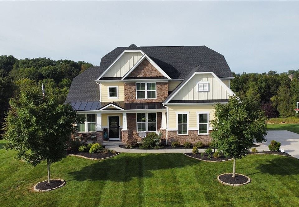 This home backs up to greenspace! Newly finished walkout lower level with full bath, gameroom, theater, exercise rm w/rubber flr. Large deck off of Kitchen Breakfast Room has stairs to expansive backyard & lower patio! 1st Flr has front room that can be used as a formal dining room or sitting room. Den has built-in bookcases & glass door for privacy. Main level Powder Rm has wainscot & grey cabinet with quartz top. Large Family Room with stone fireplace and surround sound is open to spacious Kitchen with center island and bright Breakfast Rm with glass doors to back deck. Kitchen has off white cabinets with granite tops and SS appliances. Hardwood floors in Entry, Powder Room, Mudroom, Kitchen and Breakfast Rm. Huge MBR w/walk-in closet that has potential to be expanded into large storage room behind! Master Bath has ceramic floor, 5x3 shower & 2 vanities. 2nd Flr Laundry. Hall Bath has tub/shower, ceramic flr & double vanity. BR2 has lrg walk-in closet. Att Gar has gas heater, sink.