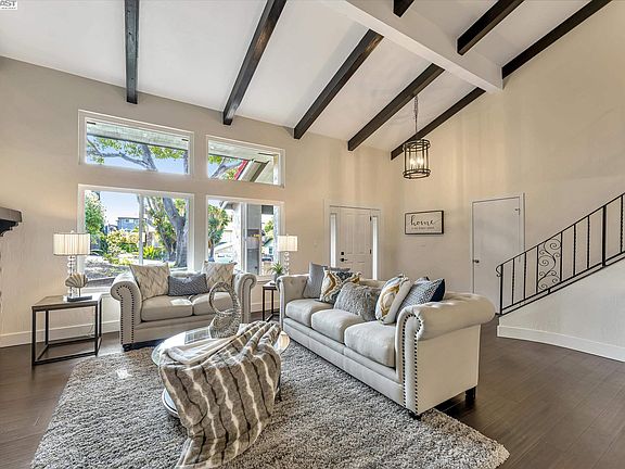 Rare to find luxury home with bay view in a prime location, 20-30 minutes commute to Berkeley and San Francisco. Great price for a new renovated home over 3000 sqft living and 8000 sqft lot. 3 beds 2 baths downstairs, 2 beds, 2 baths upstairs plus a loft and office. (2 master suites, one on each floor). Beautiful new windows, cozy fireplace, high ceiling with exposed beam adds a touch of rustic charm to the space. New bamboo hardwood floor throughout, new kitchen with well designed Ikea cabinets, 6 burners gas stove, quartz counter top, island with storage, stainless steel appliances, new lightings etc.. The master bedroom is a true sanctuary, large walk-in closet, bonus room can used for nursery or office, bay view patio is an ideal spot for enjoying a morning coffee or watching the sunset. The en-suite bathroom is beautifully appointed, with luxurious fixtures and a large shower stall. Open loft area provides ample space for various activities and furnishings. Central AC. Large back yard with built-in long bench, beautiful redwood trees, perfect place for outdoor entertaining or relaxation. The wide drive-in side yard offers ample space for RV or boat parking. With its prime location, stunning views, and luxurious amenities, this property is the perfect place to call home.