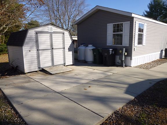 Just Listed!! Beautiful well taken care of Mobile home located in Williamstown. As you approach the property you the spacious driveway that fits 3 cars and a 8x16 front patio/porch area which is off of the living room as well as a large 16x20 side Patio/porch area that enters into the kitchen. Once Inside you find a spacious eat in kitchen with nice light brown cabinets with plenty of storage, stainless steel microwave and stainless steel stove. The kitchen flows into the spacious living room which is at the front of the house with wall to wall carpet. As you go down the hallway you have a bedroom, full bathroom, laundry room and a master bedroom at the hallway. The master bedroom measures 12x12, while the second bedroom measures 12x9, each bedroom has a spacious closet. At the back of the property there is a storage shed as well as an area for the propane tanks. Property also has concrete walk ways around the sides and back area. Recurring fees include lot rent, water, sewer and common areas. No tax bill. Don't miss out on this must see mobile home property!
