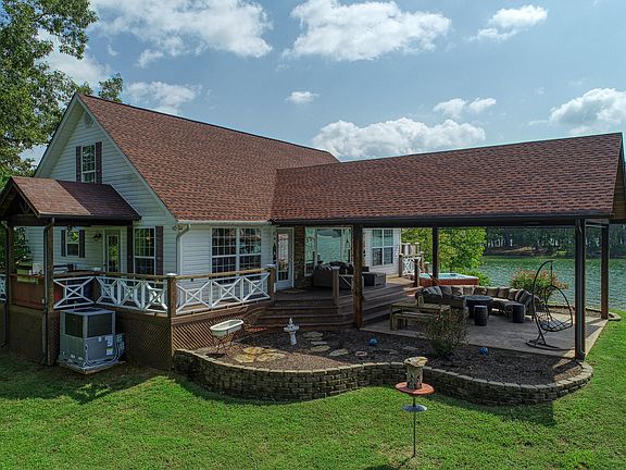 Enjoy waterfront living in style. This Property boasts a level peninsular lot encompassing over 700ft of shoreline and deep year round water. The home is situated centered on almost 2 acres of use-able land (1/2 acre deeded). No corners cut on the interior of this custom home, cabinetry and built-ins have added a wonderful touch. Interior detail is exceptional. Home has a detached two car garage. New dock with the largest allowable space, Two boat lifts, two Jet Ski lifts, cool touch composite decked. built in air compressor and pressure washer tucked into your docks own systems garage. Remote lifts for ease of docking and departing. Come see this home today before it is too late!!!