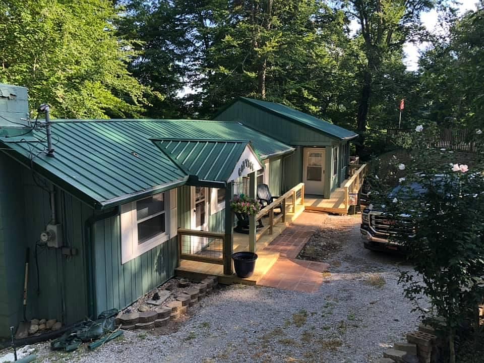 Beautiful lake home overlooking Less Ford Marina. Full renovated and move in ready. Plenty of boat parking. Main floor features large family room overlooking Lees Ford, with large 8' slider door onto brand new 14'x18' deck with fenced pet area underneath deck. Large dining room, laundry area, renovated kitchen and full bath and a large bedroom with fireplace. Walkout basement has bedroom, full bath, storage area. Metal roof and fantastic lake views, along with less than 5 min drive to Lees Ford Restaurant and boat ramp, makes this the perfect summer home. Also, comes with all appliances inc. washer/dryer and some furniture making the perfect AIRBNB.