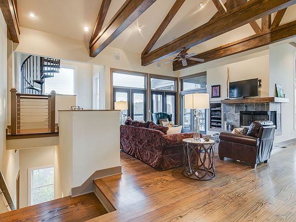 Discover serene lakeside living at 235 Hope Cove, Smithville, TN. This stunning two-level chalet-style home offers breathtaking sunset views of the lake and dramatic rolling hills. With 3 bedrooms and 3.5 bathrooms spread across 2529 sqft, this residence boasts a new roof and tankless water heater. Soaring ceilings and ample windows flood the interior with natural light. Enjoy the convenience of a dishwasher, indoor fireplace, outdoor fireplace and security system. Two screen porches, two balconies, and a lookout tower above the roof level provide multiple vantage points for taking in the picturesque surroundings. Embrace lakefront living with this exceptional property that seamlessly blends comfort and natural beauty.