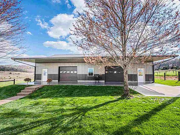 Stunning!! This Custom 5 bedroom, 2 bath home is over 3000 square feet and situated on over 9 park-like acres. Perfect for entertaining! Huge covered porch welcomes you inside where you'll find natural hardwood floors and trim. Over-sized kitchen allows for large table as well as additional sitting/dining space. Two bedrooms, full bath and ''mud-room'' are on main level. 3 bedrooms, a library with custom built shelves and cabinets, and full bath are on 2nd floor. Outdoors is amazing! Entertain under the 30x40 pavilion with water and fire pit area, overlooking the pond with pea gravel beach! Horse barn has 6 box stalls with grids and gravel with drainage pipes, a washroom and tack room. Bonus 40x60 shop/garage has a stove, sink, water and full bath. Call to schedule your private tour