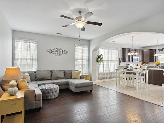 This beautiful home has stacked front porches!!! Once through entryway, you will find an open floor plan with kitchen looking over dining room and into living room. The kitchen island adds tons of storage and counter space. Primary bedroom is on Main, along with laundry. Primary bath has garden tub, separate shower, walk in closet and dual vanities. 3 Secondary bedrooms are upstairs along with HUGE loft! Hall bath has separate wet room and linen closet. Don't forget, access to the second floor front porch!!! Vinyl fenced back yard, huge back patio and alleyway driveway and 2 car garage access. Don't forget to check out all the amenities!!!