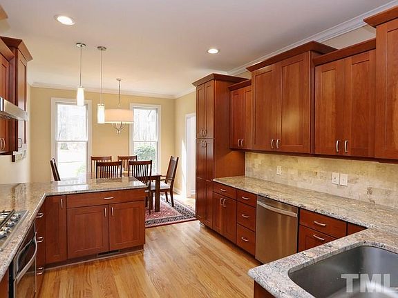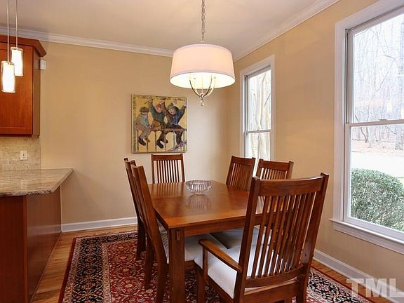 Price Creek Neighborhood*Chapel Hill address w/Chatham County taxes*1.74 acres*Private setting at the end of St.*Open space w/ partial fenced yard*Renovated 3 bedrm, 2 1/2 bath home*Gourmet kitchen w/ sit-up bar & separate breakfast rm embrace wooded views*Wood fireplace centers the family rm*Master bedrm w/ tray ceiling, bay window & spa bathrm w/ granite countertops,custom walk-in shower, & walk-in closet*Great storage*Unf bonus rm above garage*Built-in workshop in garage*Decks*Patio*Convenient location