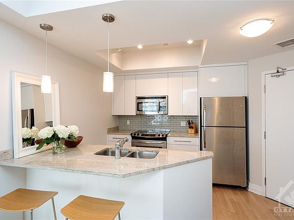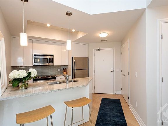 Charlesfort-built/Hobin-designed prestigious residences within a stone's throw of all that is on offer in Ottawa's downtown core. Unique architecture and construction, coupled with the unmatched superior design of its interior spaces along with its amenities & wonderful location Hudson Park takes its place as being among Ottawa's most sought-after condos of today. The "Brooklyn" features 2 spacious bedrms, each with lots of closet space (built in organizers)), 2 full baths (one ensuite) & in unit laundry. Entertainment-sized living/dining rm combination with large south facing windows & west facing balcony. Hardwood flooring throughout, along with its high windows& high ceilings, open-concept kitchen w/ granite counters, backsplash, stainless steel appliances & eat-up cafe bar. One underground parking/locker. Offers will be reviewed at7:30 pm on Friday March 12th 2021.as per owners instruction and form 244. Owners reserves the right to review and may accept preemptive offers.